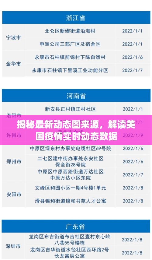 最新动态图出处指的是关于美国疫情实时数据的可视化呈现的来源和出处,这些动态图通常包括疫情曲线图、新增病例数、死亡人数、疫苗接种进度等数据,通过动态图,人们可以直观地了解美国疫情的实时状况和发展趋势。