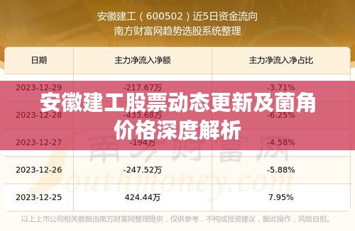 关注安徽建工股票最新消息和菌角价格时,我们需要从定义和内涵出发,结合专家级见解和落实指南进行深入分析,也要提高警惕,防范虚假宣传和不实信息的干扰,做出理性的投资决策。