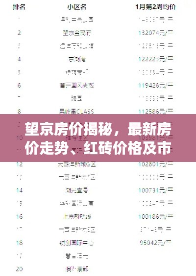 随着城市的发展与变迁,望京作为一个热门的居住区,其房价一直是人们关注的焦点,而近期,望京的房价走势及红砖价格更是成为了市场热议的话题,本文将围绕“望京最新房价”和“红砖价格”这两个关键词,详细解读其背后的市场现象和趋势。