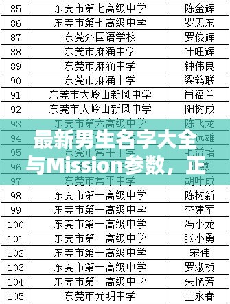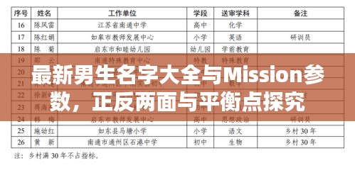 在当下社会,男生的名字与mission实时参数不仅是个人身份的象征,也反映了时代文化的发展趋势,随着科技的进步和全球化的推进,人们在命名上呈现出多元化的特点,mission实时参数也在不断地更新迭代,影响着人们的生活方式和工作模式,本文将从正反两个方面对“最新男生名字大全与mission实时参数”进行阐述,并寻求二者之间的平衡点。